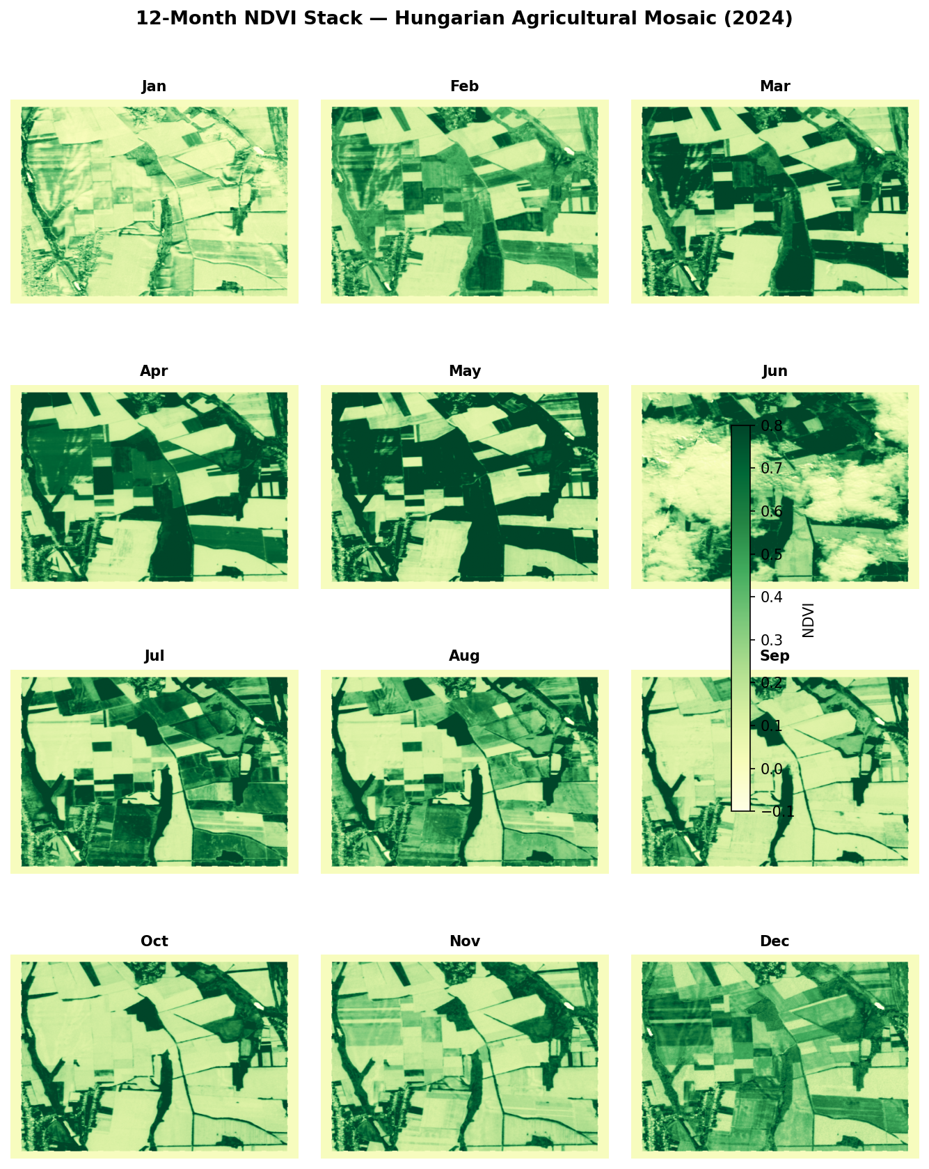 When does vegetation peak — and does it peak on schedule? Crop calendars are invisible from the ground at scale. This project builds a satellite-native phenological intelligence framework that detects peak greenness timing at pixel level across an entire agricultural landscape, from a dense multi-temporal Sentinel-2 stack.